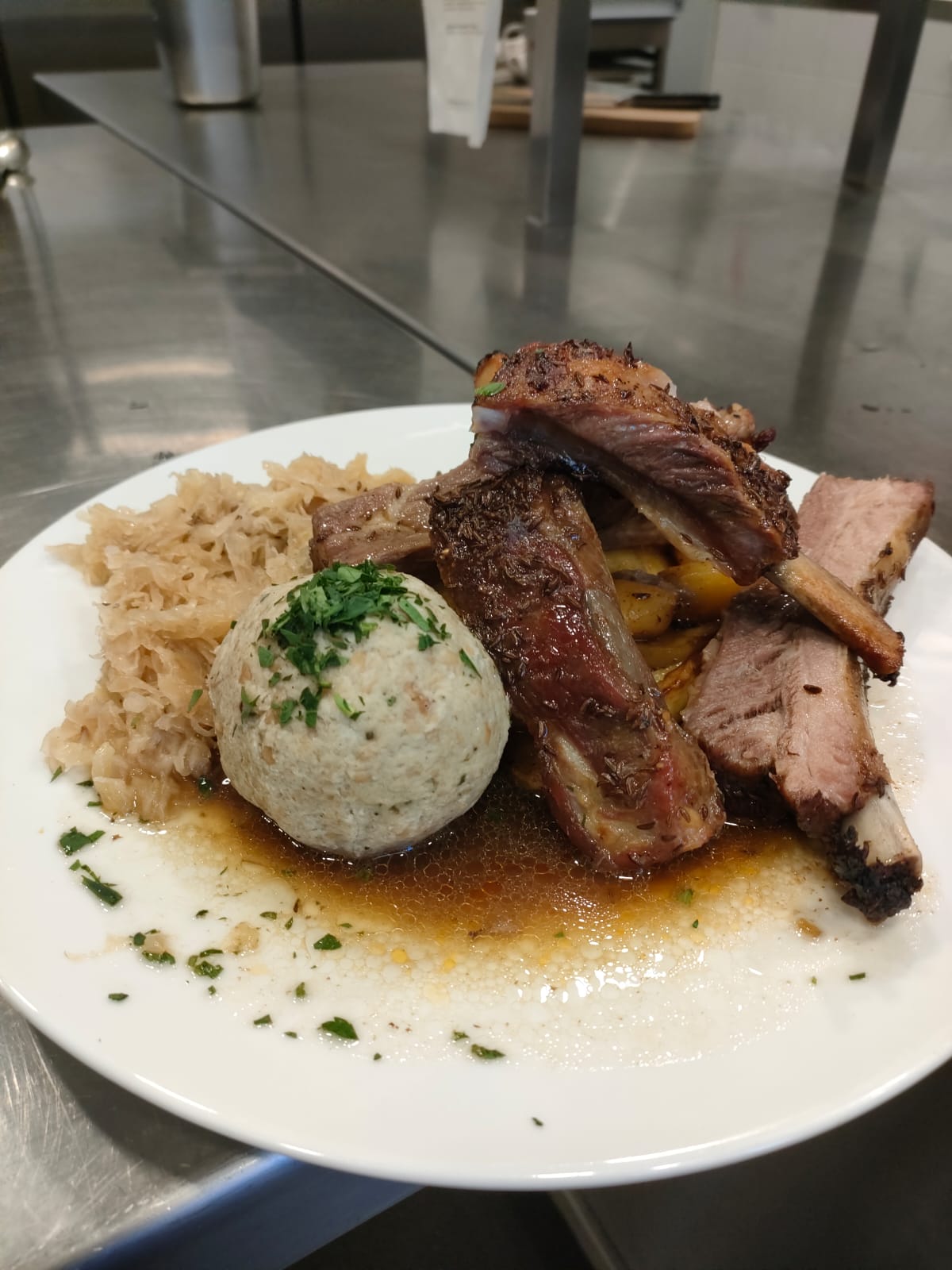 Schweinebraten mit Knödel und Kraut