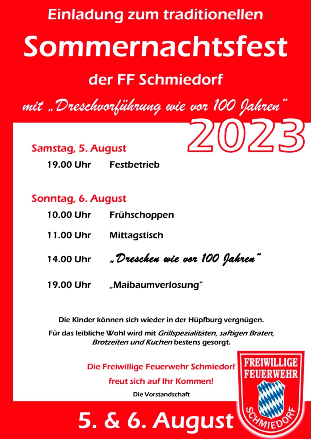 Die Freiwillige Feuerwehr Schmiedorf freut sich auf Ihr Kommen!